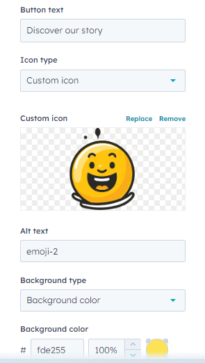 customize headings, description, button text and choose cutom icon hubspot and image with change background color