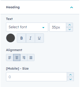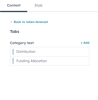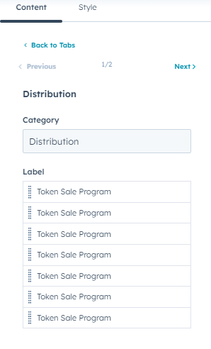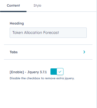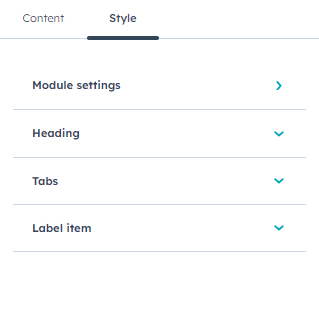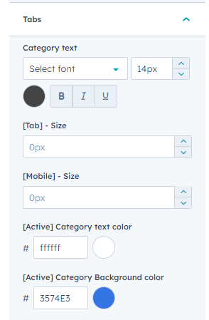 Customise the heading content and Tabs settings.