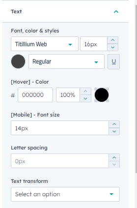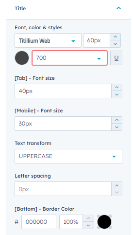 Customise title font colour, styles, spacing, border colour and text transform from title settings.