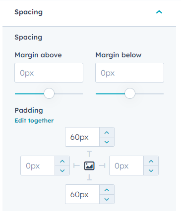 In module style, you can customise the spacing, background and width inner container settings. In spacing setting, you can customise the margins and paddings.