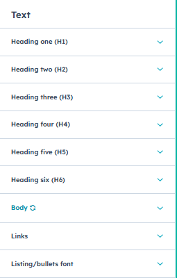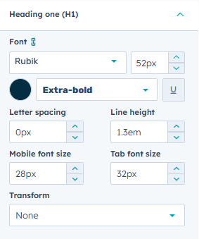 Each heading has its own font, text color, letter spacing, line height, mobile & tab size, text transform defined under this category.