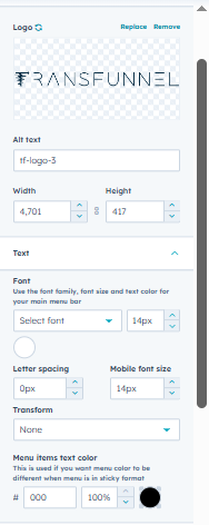 Customize logo and text of the menu with font, color, letter spacing and many more