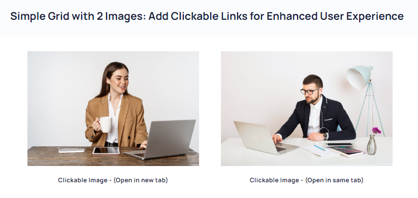 This feature allows you to make any image on your website clickable by adding a link to it. You can choose to open the link in a new tab or in the same tab, and you can link to any page or resource on your website or any external website. This feature is easy to use and can help improve user experience by making it easier for visitors to navigate your website.