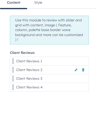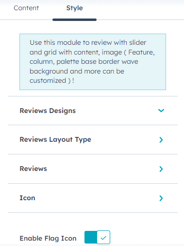In style settings, you can customise the review designs, review layout type, reviews and icon in the module
