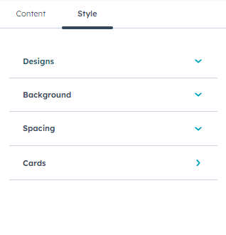 The variant 2 gives options to customise designs, background, spacing, and cards from style settings.