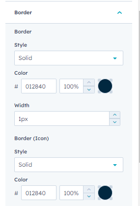 Customise border style, colour, width, icon border style, colour, width and Bold border colour.